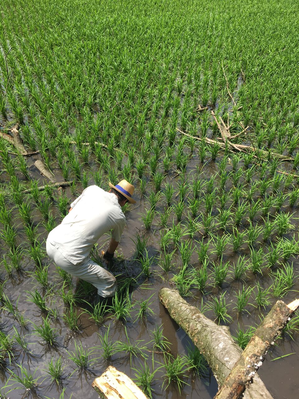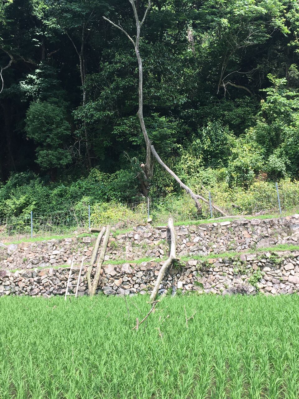 で、しょうがないので、分株期のイネの中にバッタリ倒れた木を妻と二人で取り除きました。