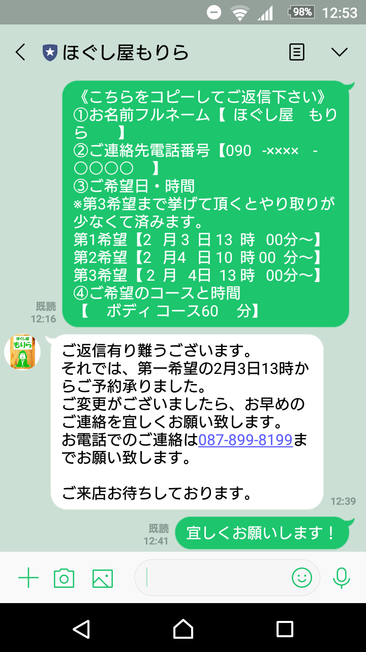 LINEのお友だち登録をしていただいたお客様はLINEから予約が出来るようになりました!(前日までの予約に限り)
