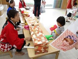 です。親子でたくさん参加して頂いたほか、保育園トキで過ごした懐かしいお友だちも遊びに来てくれました。ゲームはもぐらたたき・スマートボール・くじ引き・ヨーヨーすくい!