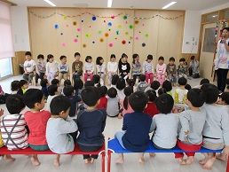 この日は、分園の在園児の子どもたちが、お世話になったトッキー組さんを送るお別れ会がありました。