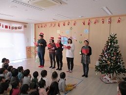 分園は、先生たちによる聖歌隊でクリスマス会の幕開け