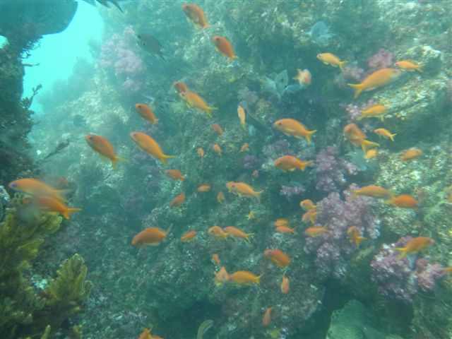 魚影が濃い時期になりますと、キンギョハナダイ・ソラスズメダイ・スズメダイが混泳の写真になりますが、キンギョハナダイとソフトコーラルの写真をじっくり狙うなら今がオススメ・・・。