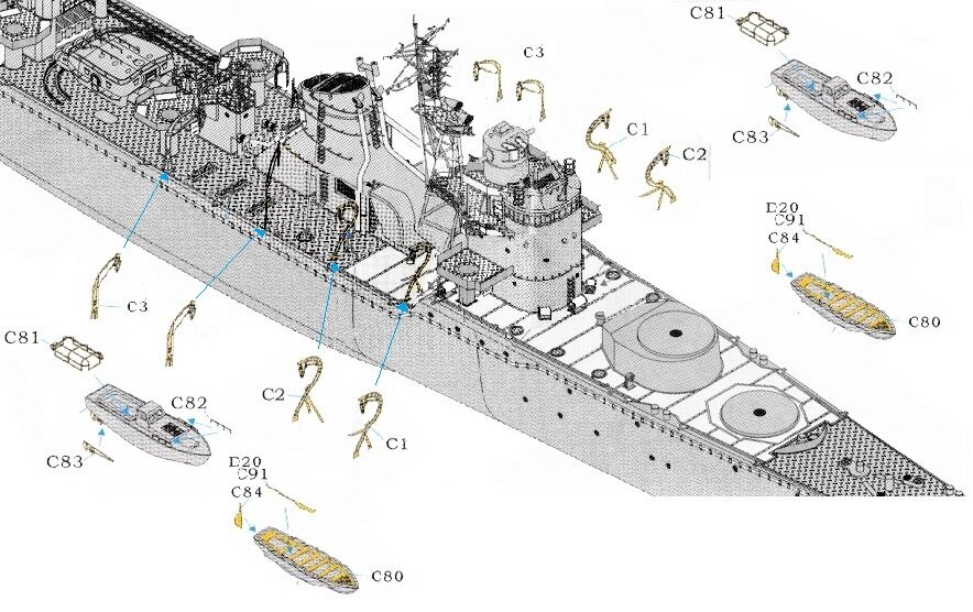 1 エッチングはリノリウム甲板上と主錨鎖と対空機銃を除いて概成する。