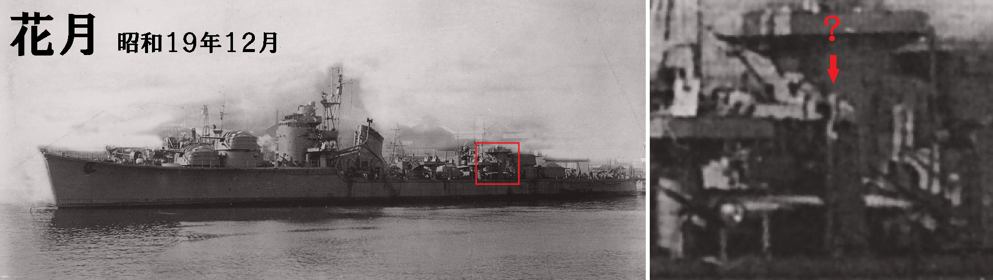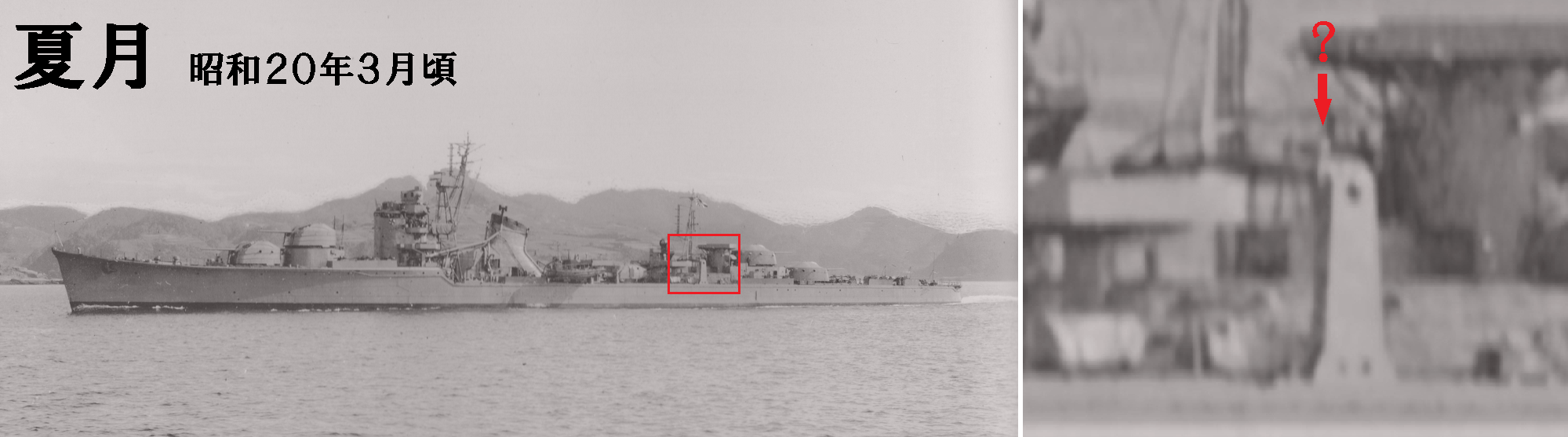 ↓戦中の「夏月」「花月」にも?が写っておりますので戦後の装備ではないようです。↓↑しかしこれが何であるかは結局お手上げです。