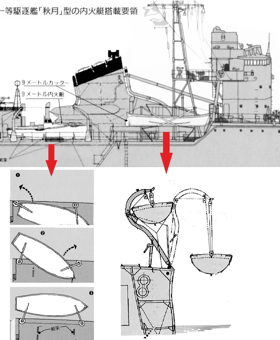 ↓今日は「内火艇」です、先ずは軍艦メカニズム図鑑からいきましょう。↓↑秋月型駆逐艦の内火艇は「9m内火艇」と「9mカッター」それぞれ2隻搭載し、夕雲型・陽炎型ら甲型駆逐艦のよりも一回り大きいものでした。↓↑このように比較すると秋月型の内火艇は威風堂々と見えてしまいます、コレ 軽巡の標準装備品なので秋月型駆逐艦がいかに巨体なのか解かろうものです。↑