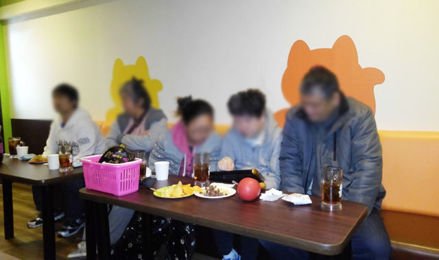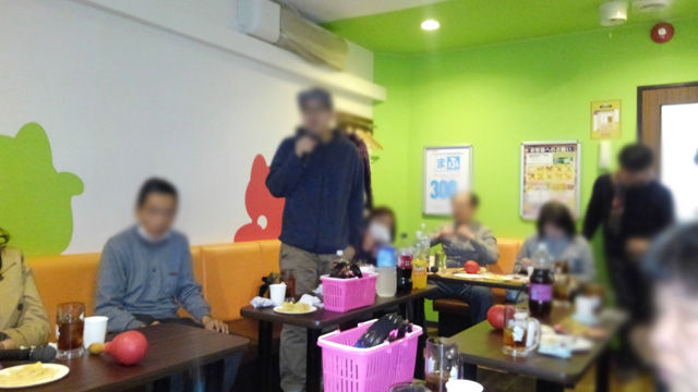 お菓子とジュースを持ち込んで小さなパーティー状態。