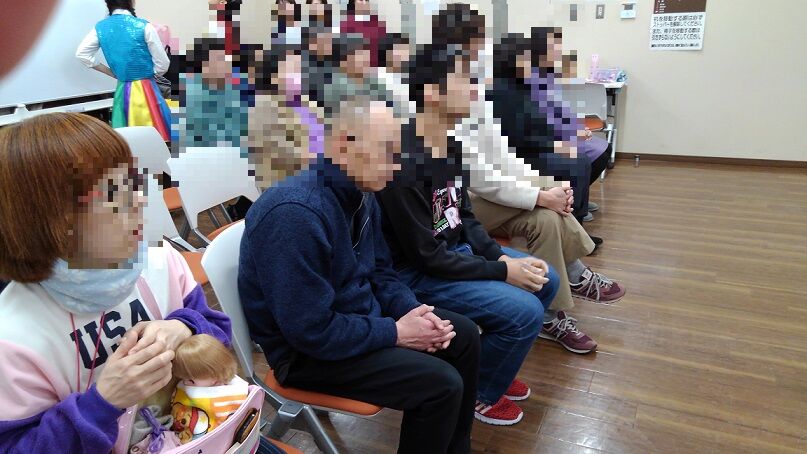 踊りを見て、拍手や喝采を送る参加者の皆さん。大喜びで職員も一緒にはしゃいでいます。