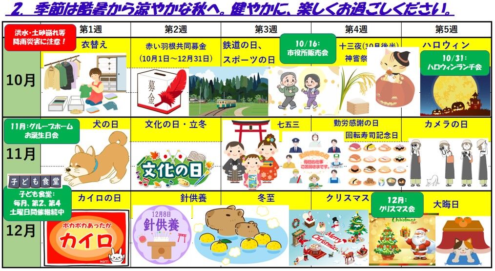 ② 3ヶ月 絵カレンダー(季節は秋&冬へ)