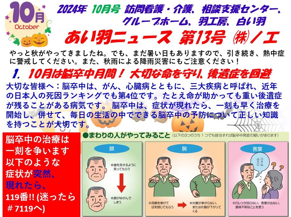 今回は、あい羽NEWS 2024年 10月号を掲載いたします。