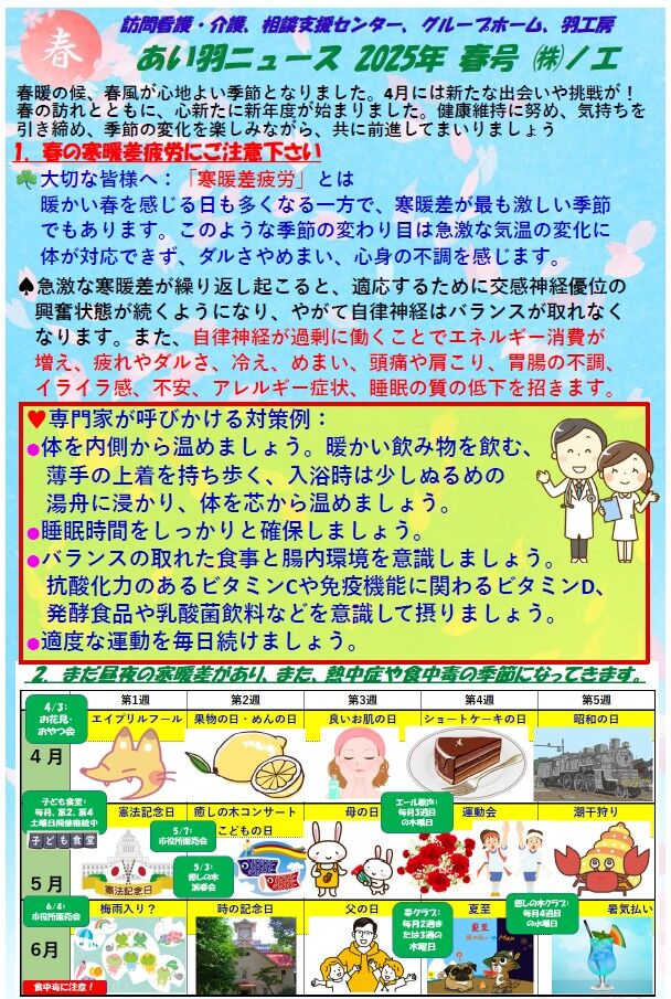 今回は、あい羽NEWS 2025年 春号を掲載いたします。