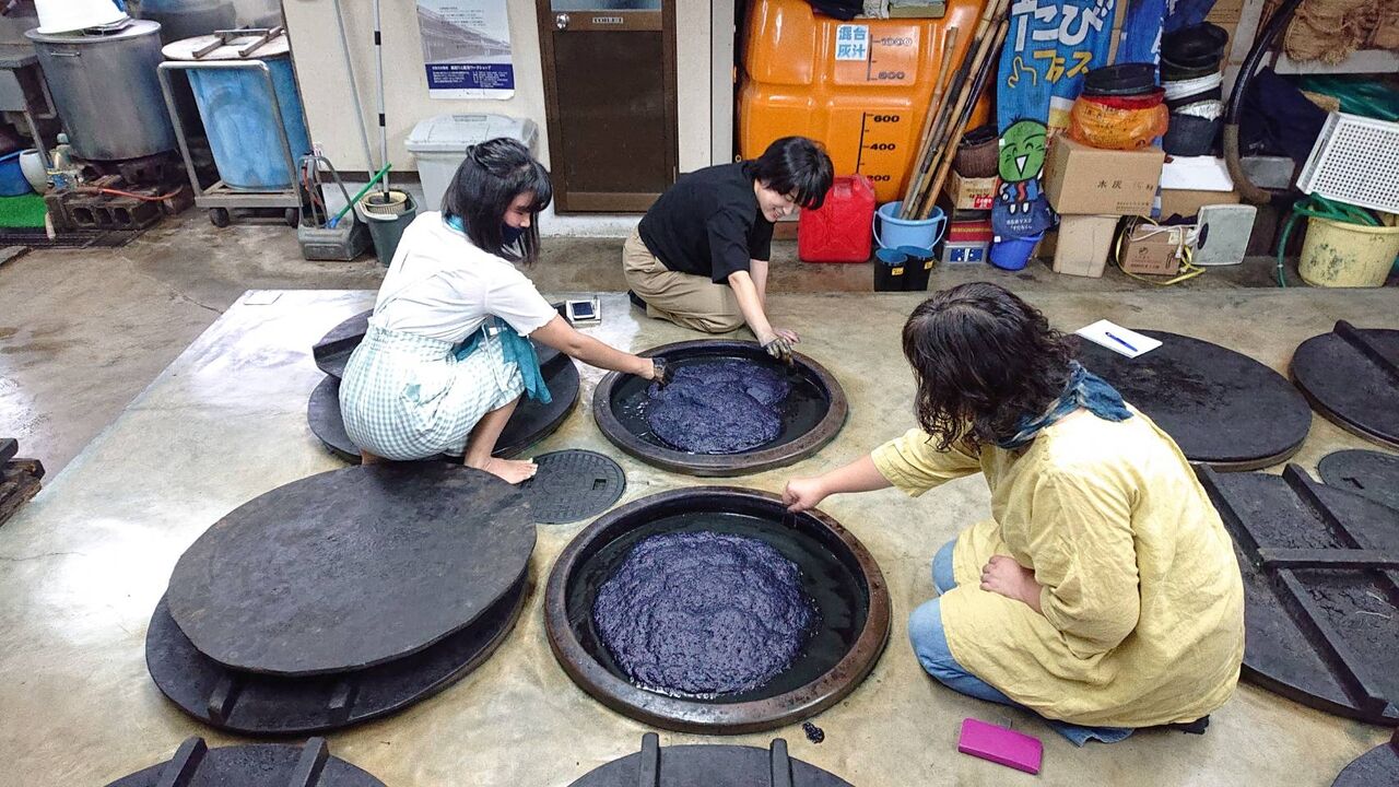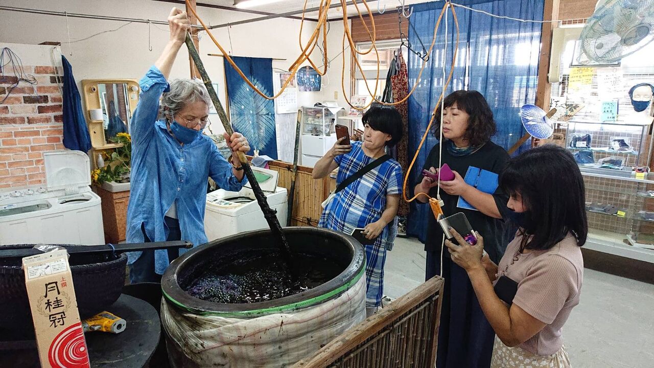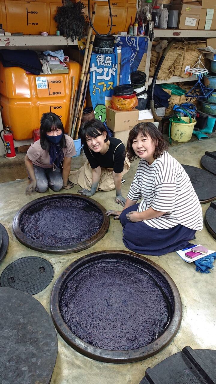 日本が誇る「天然灰汁発酵建てによる本藍染」の技術を優しく丁寧に指導致します。