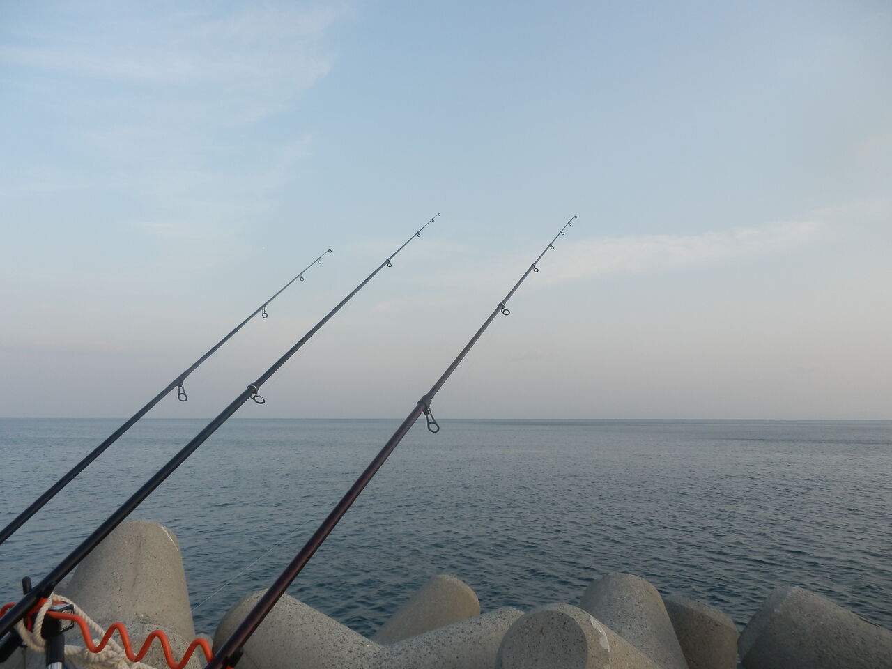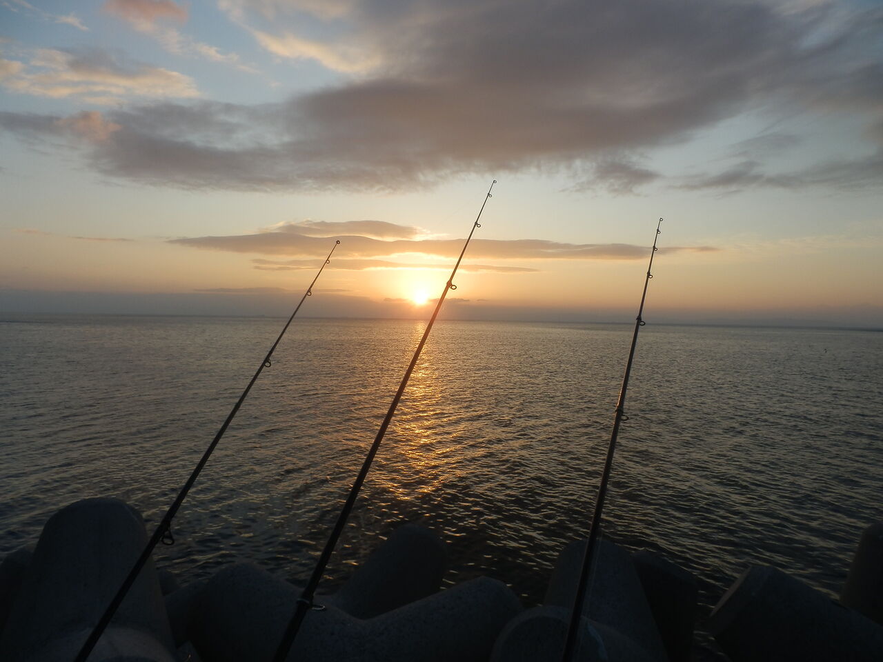 先端を陣取り投げ竿3本の準備だけして夜明けを待ちますっ
