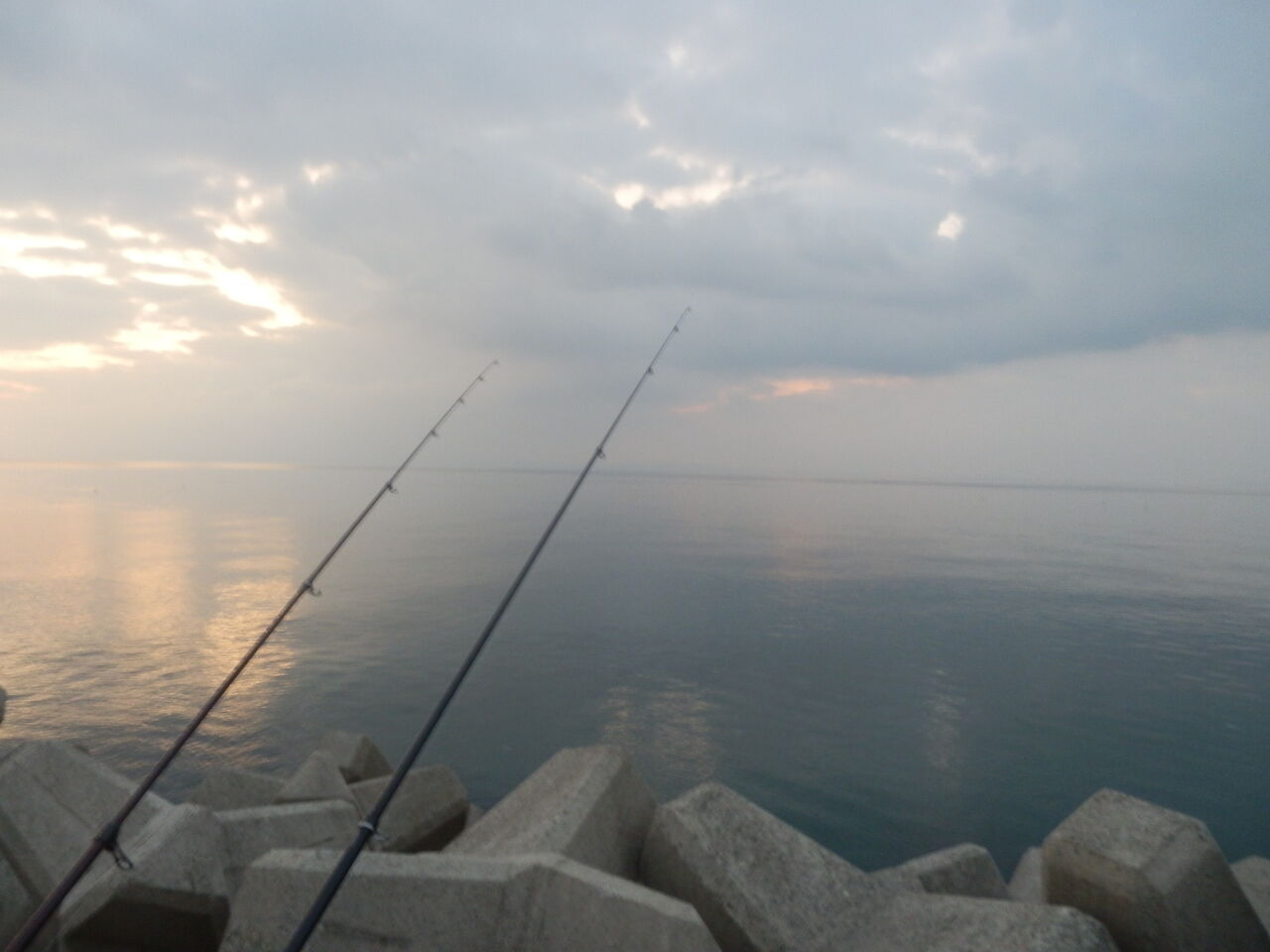 仕方なく波止の中間あたりに陣取りそろそろ東の空が明けてきたので急いで準備します