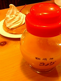 可愛い瓶に入ったオレンジジュースと焼きたてのパンのようなほわほわなシロノワール♪