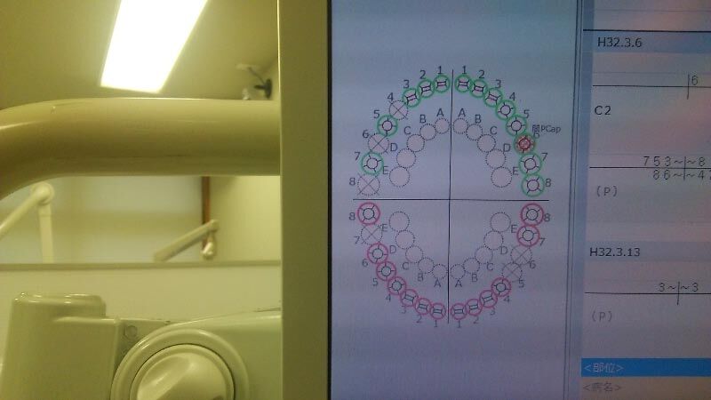 やわになっている詰め物・かぶせ物は、この歯石とりで全て取れました。取れると不便なので、仮付けしてもらい、徐々に処置をやり直すことになります^^;^^;。