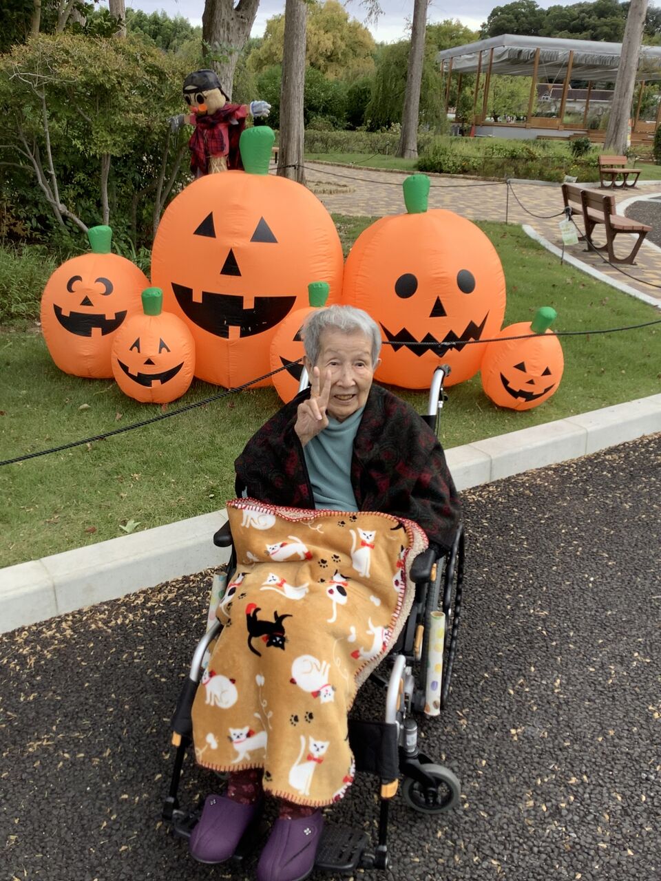 2025年10月31日 ハロウィン 今年も残り2ヶ月に差し掛かる今日このごろ。神の倉では、本格的に寒くなる前にリニューアルオープンしてから行けてなかった農業センターにお出かけしました。農業センターはハロウィン🎃1色✨️利用者様もいい笑顔ですね♥いつもの施設とは違う外に出かけることで、満面の笑みを浮かべる方ばかり。でも、急激に冷えてきたので、上着とひざ掛けで完全防備してからのおでかけでした。出かけるのは楽しいですよね。わたしも個人的にハロウィンパーティしました(笑)