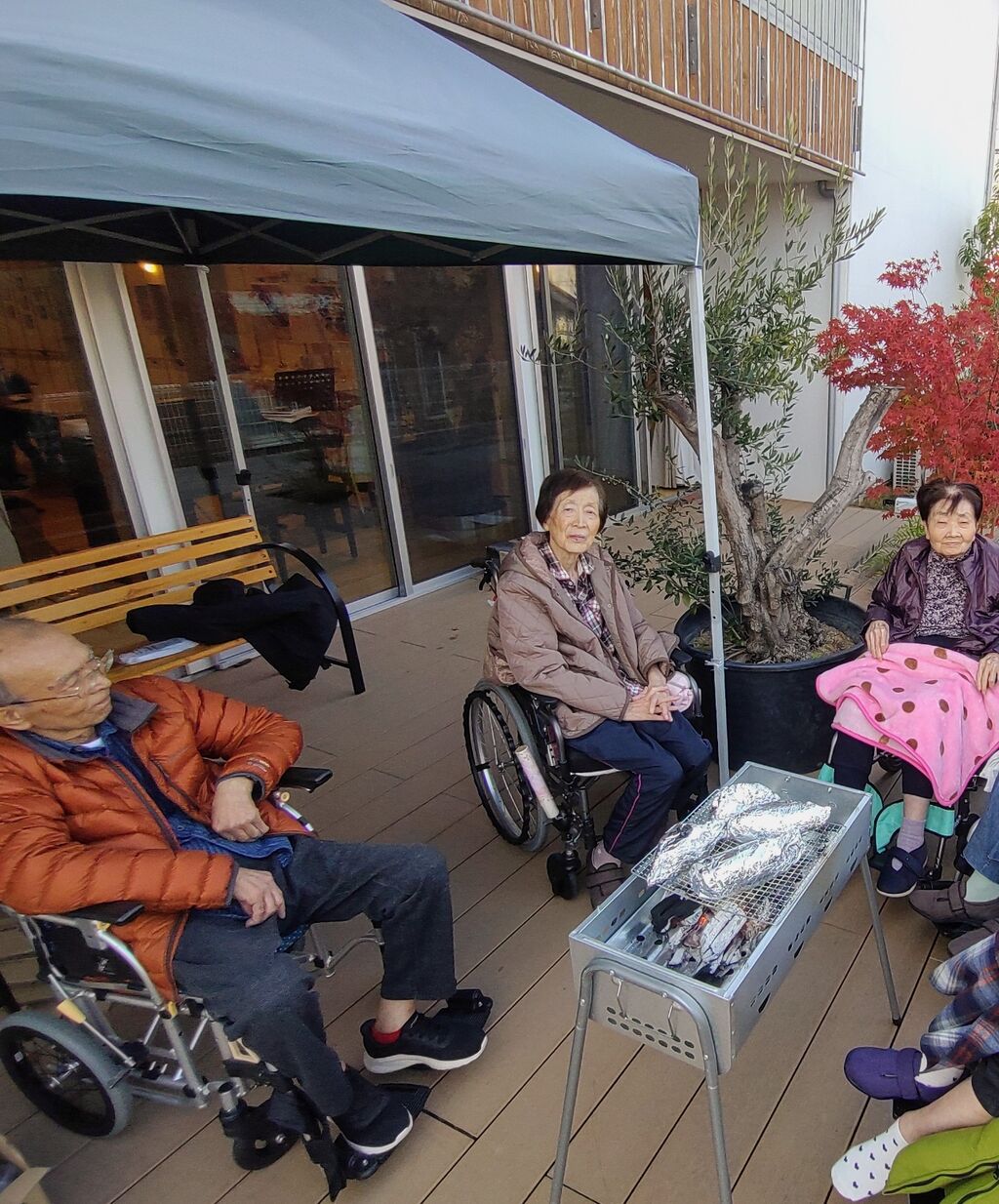 2025年11月30日 焼き芋 ついに11月も残り僅かになってきました。1年があっという間に終わってしまいますね。先日勤労感謝の日が今年最後の三連休だったそうですね。先日なかひらにお邪魔した際に、なかひらでは、利用者様の家族様からいただいた芋で焼き芋🍠パーティを開催してました。紅葉したウッドデッキで焼けるのを皆さん待っていたり、真剣な顔で焼き芋の加減をみていたり、焼き芋が焼けるのがとても楽しみにされてました。実際に焼き芋🍠を皆さん食べる際は笑顔が溢れてました✨️