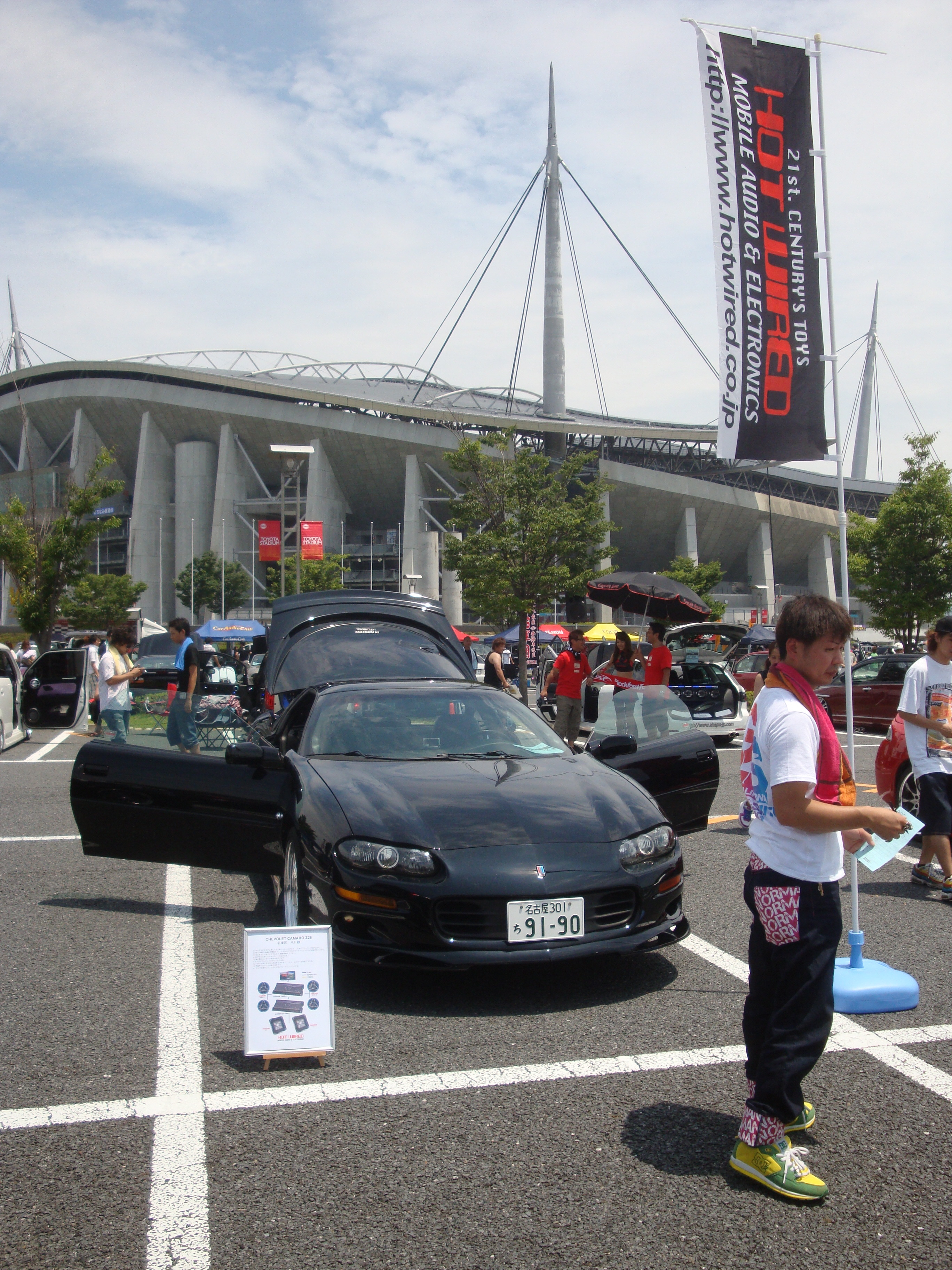 カスタムカーの取材を受けている、カマロZ28。