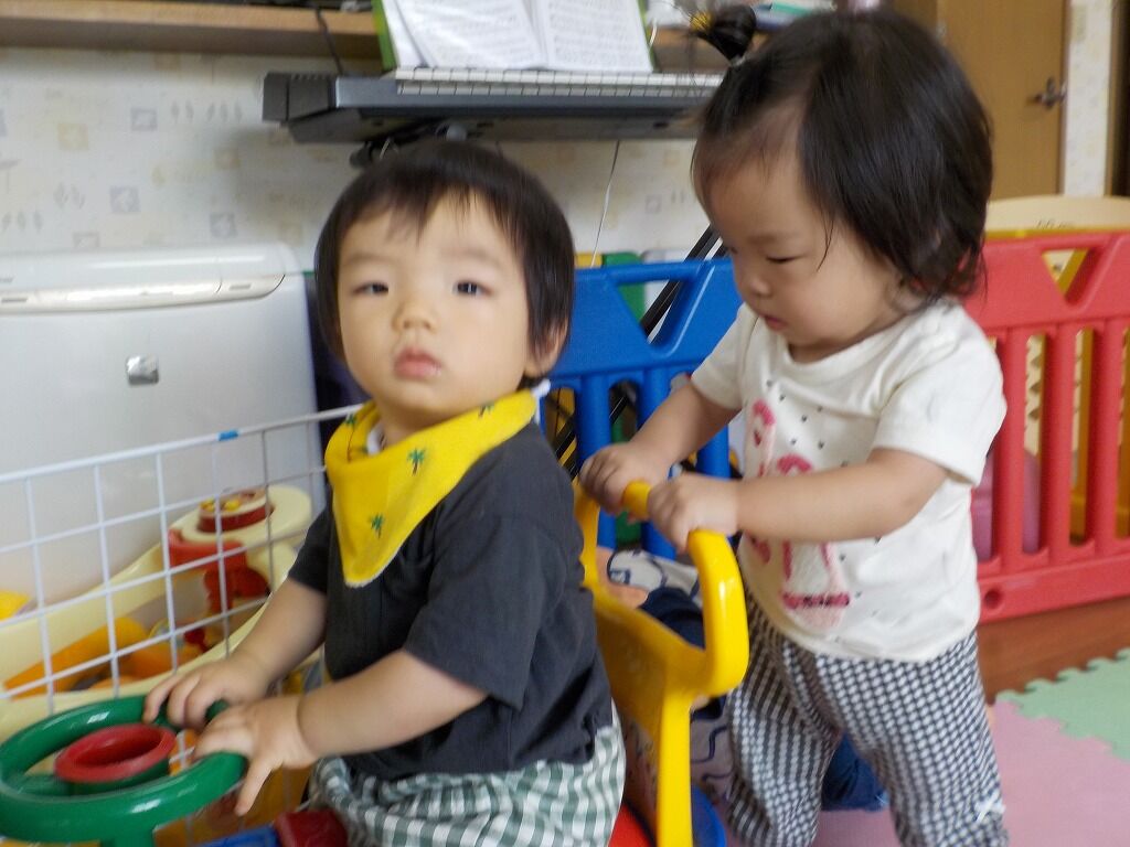 車に乗ったり、押したりして楽しんでいました