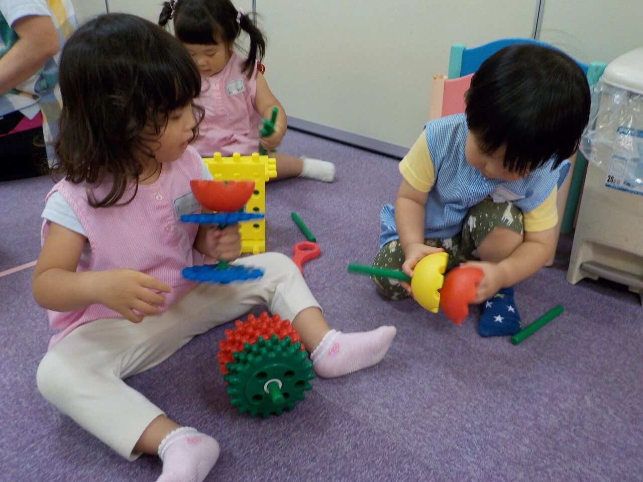 ブロックを組み合わせ「チューリップみたい!!」と見立て遊び