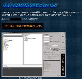 同サイトの履歴によると、原田ウイルスの項目の作成日は、06年3月11日。この編集者は、**容疑者が匿名で開設したホームページ(HP)「P2P−DESTROYER」に関する項目もほぼ1人で書き込んでいた。以前にも紹介した、「P2P-DESTROYER」とは、(ウイルスなどの)既存のEXEファイル+画像/動画ファイルなどをセットにした圧縮ファイルを素人でも簡単にクリック数回だけで作れるという、「反P2Pファイル共有」を謳った悪戯ツール。