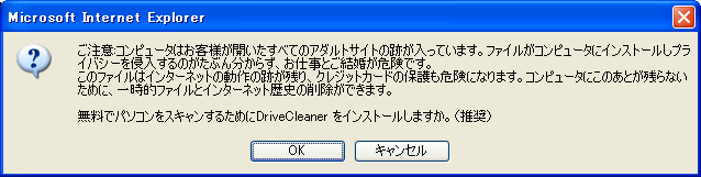 何処だっけか、ページを開いたらIEの窓が小さく固定されて以下のMsgboxが↓