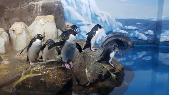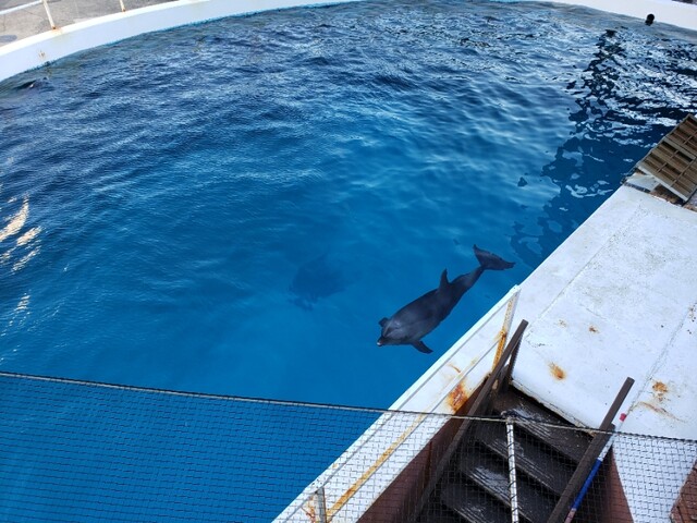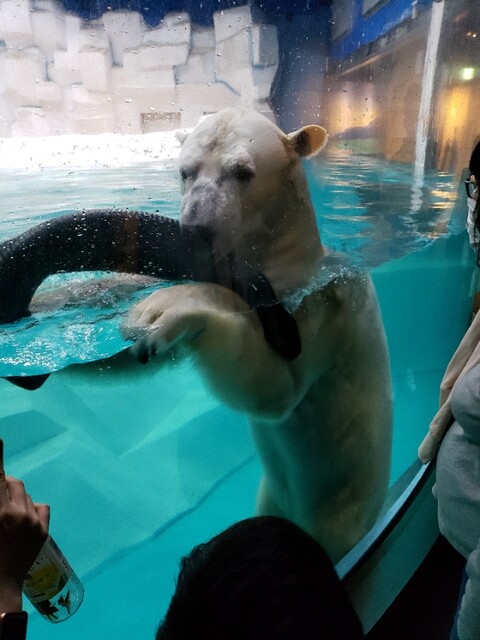 当然ながらガラス越しではあるんですが、目の前で白熊が泳いでタイヤで遊んでたり、ペンギンの展示は各種類ごとに展示されてて、前述の通り着いた時にはイルカショー終了後だった事もあってか、バックヤード的な水槽にて…これは「展示」って事でもなかったんですが、予約していればふれあいコーナーで触ったりとか出来たみたいですがね。余談ですが、イルカショーが行われるプールがあるスタジアム?ではちらっと見たところ馬に芸をさせてた様ですが、芸してたのかなぁ?あれ。