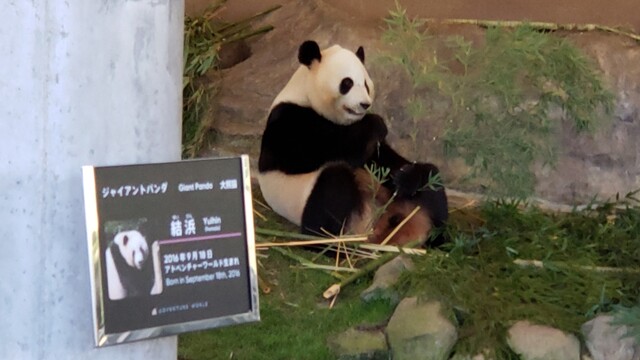 で、アドベンチャーワールドですよ。さすがに平日なんで全然混んじゃいないんですが、途中せっかくだからと乗った別料金(700円)のジェットコースターに修学旅行の中学生かと思われる集団が群がってワイワイとね。まあ怖さでいえば気持ち悪くならない程度の高低差といった感じで(もっとも周囲がかなりの高台なので海側向いた際の景色の抜けはいい)。それも待たずに乗れるくらいと。そんな中でもですよ。それでも苦も無く最前列行けるわけですが…パンダですわ。あのYouTubeで飼育員さんにくっついて回るのでお馴染みな。実際問題数少ない上野動物園行った時にもパンダって見たことが無いので、初対面でして。