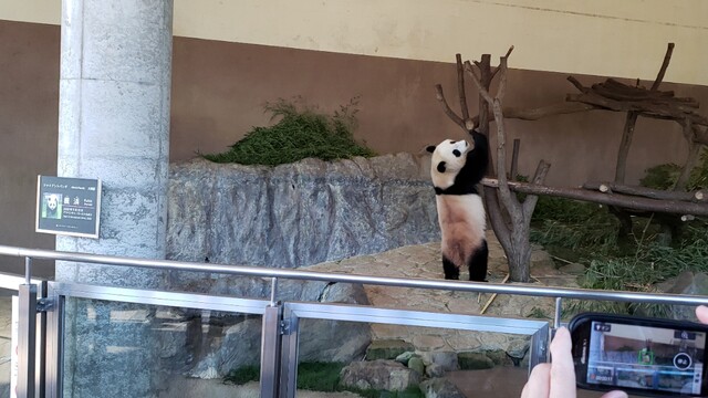 そんな中でもですよ。それでも苦も無く最前列行けるわけですが…パンダですわ。あのYouTubeで飼育員さんにくっついて回るのでお馴染みな。実際問題数少ない上野動物園行った時にもパンダって見たことが無いので、初対面でして。