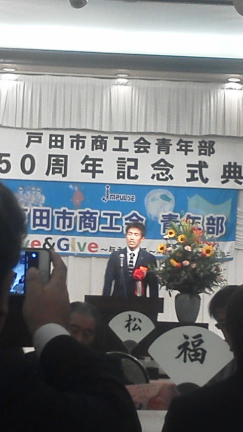 戸田市商工会青年部創立50周年記念式典に出席してきました、アントニオ猪木氏からのビデオメッセージやドテレンジャー登場など盛大で楽しい式典でした、