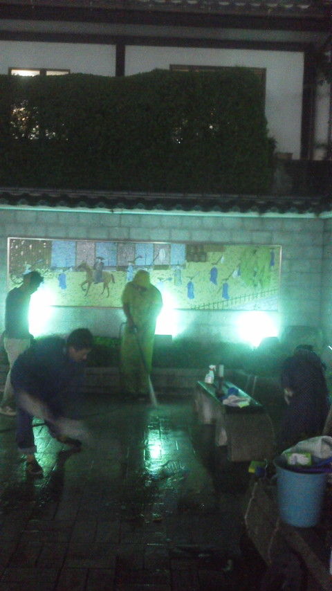 今年の市内一斉美化清掃は例年と違い、市内のシンボル的な一カ所を重点的に清掃しました、プロのお掃除屋、山野辺君と強力洗浄マシーン有する小竹君の全面協力で御成坂公園をピカピカにしました、