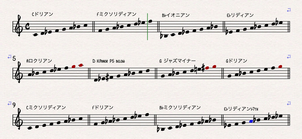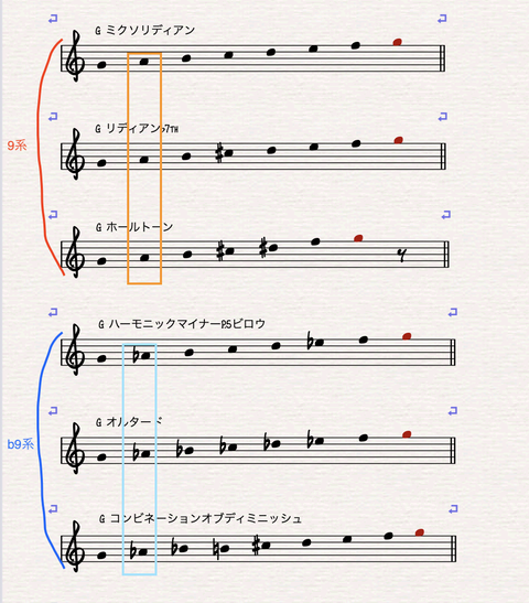 ÉèÎã2¤ò¤´Í÷¤¯¤À¤µ¤¤¡£¾å3¤Ä¤È²¼3¤Ä¤Ç¡É9th·Ï¡É¤È¡Éb9th·Ï¡É¤Ç¿§Ê¬¤±¤µ¤ì¤Æ¤¤¤Þ¤¹¡£¥¹¥±¡¼¥ë¤Î2ÈÖÌܤ⻤ò»Í³Ñ¤¯°Ï¤ó¤Ç¤¤¤Þ¤¹¤¬¡¢¤³¤Î2ÈÖÌܤβ»¡Ê¥Æ¥ó¥·¥ç¥ó¤Ç¤¤¤¦¤È9th¡Ë¤¬¥Ê¥Á¥å¥é¥ë¤Ê¤Î¤«¥Õ¥é¥Ã¥È¤Ê¤Î¤«¤Ç²»¤Î¡ÉÌÀ¤ë¤¤°Å¤¤¡É¤Î°õ¾Ý¤¬ÊѤï¤Ã¤Æ¤¤Þ¤¹¡£
