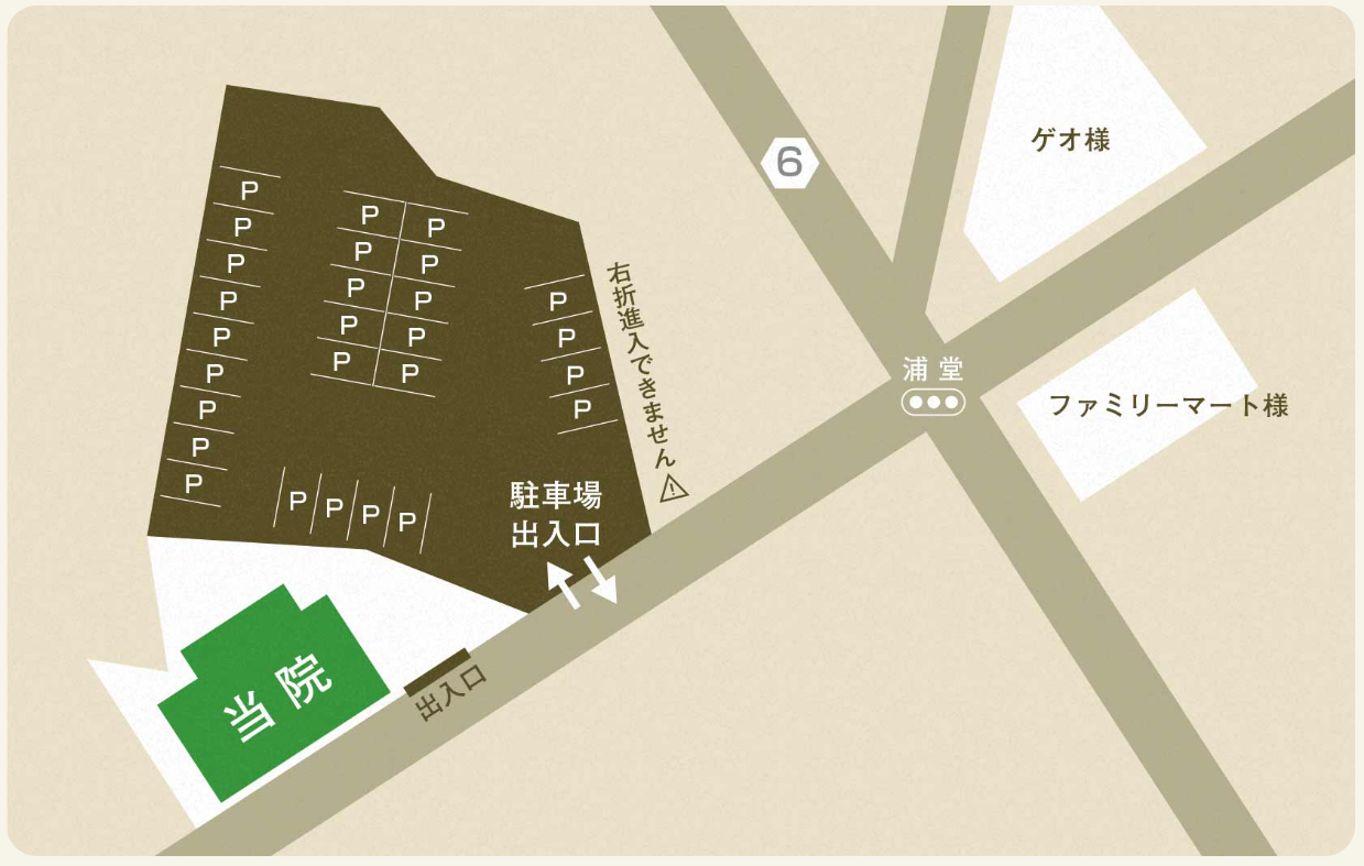 当院は交差点に近いため、右折での出入庫は危険です。