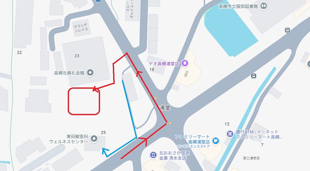 当院北側の高槻北典礼会館さんの駐車場をご厚意でお借りしました。