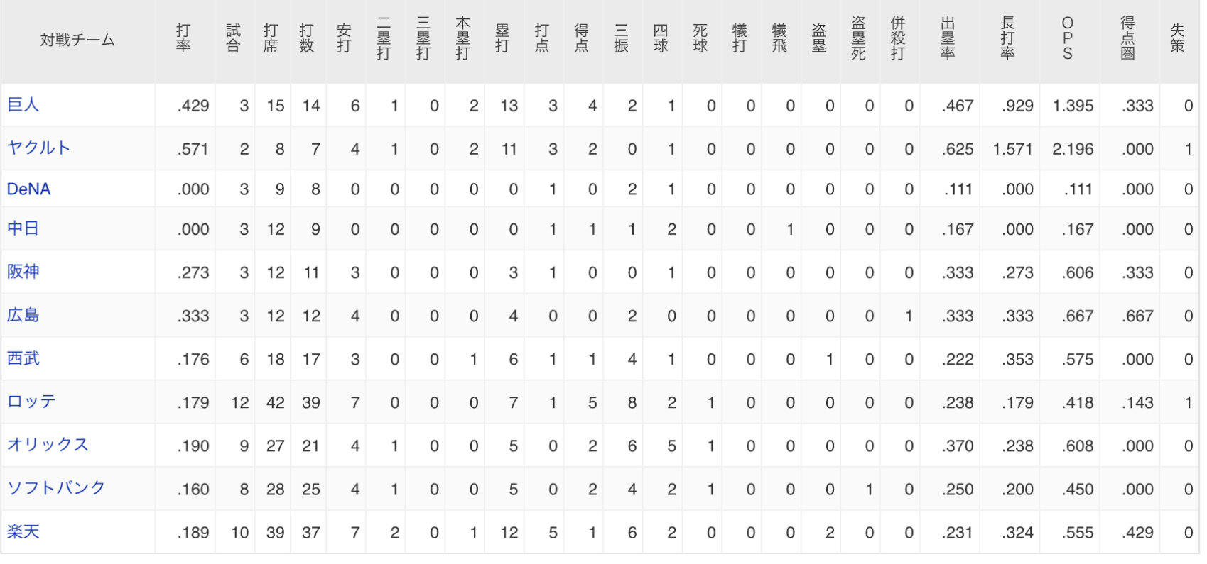 対パ・リーグ全球団打率1割なの地味にヤバイ