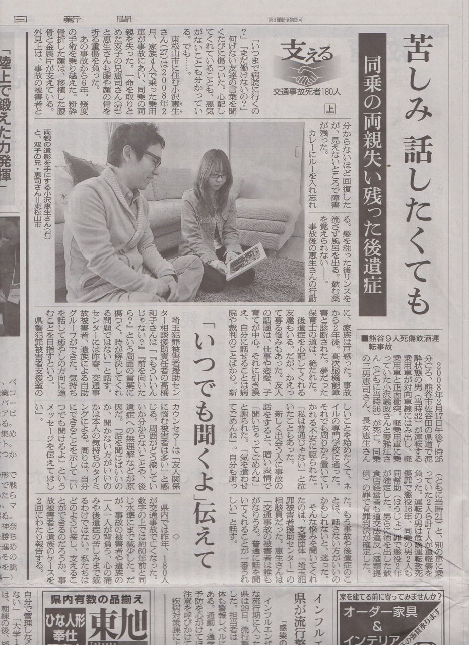 「支える/交通事故死者180人」と題した2回の連載。