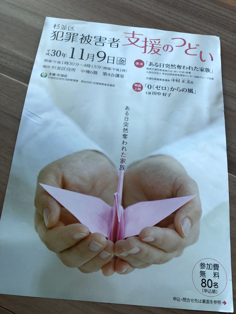 杉並区「犯罪被害者 支援のつどい」での講演活動(2018.11.9)