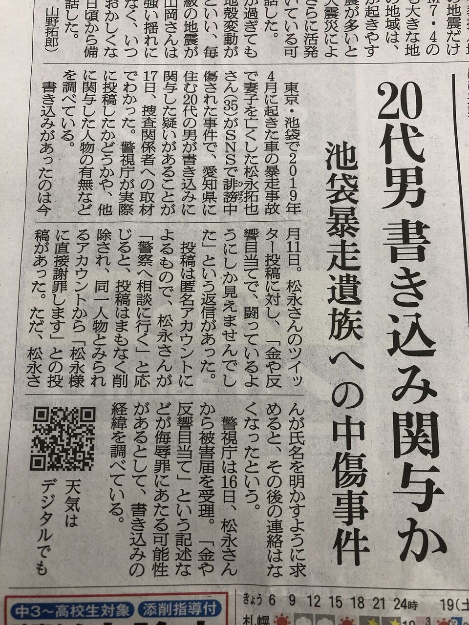 池袋暴走事故の遺族にまた中傷投稿
