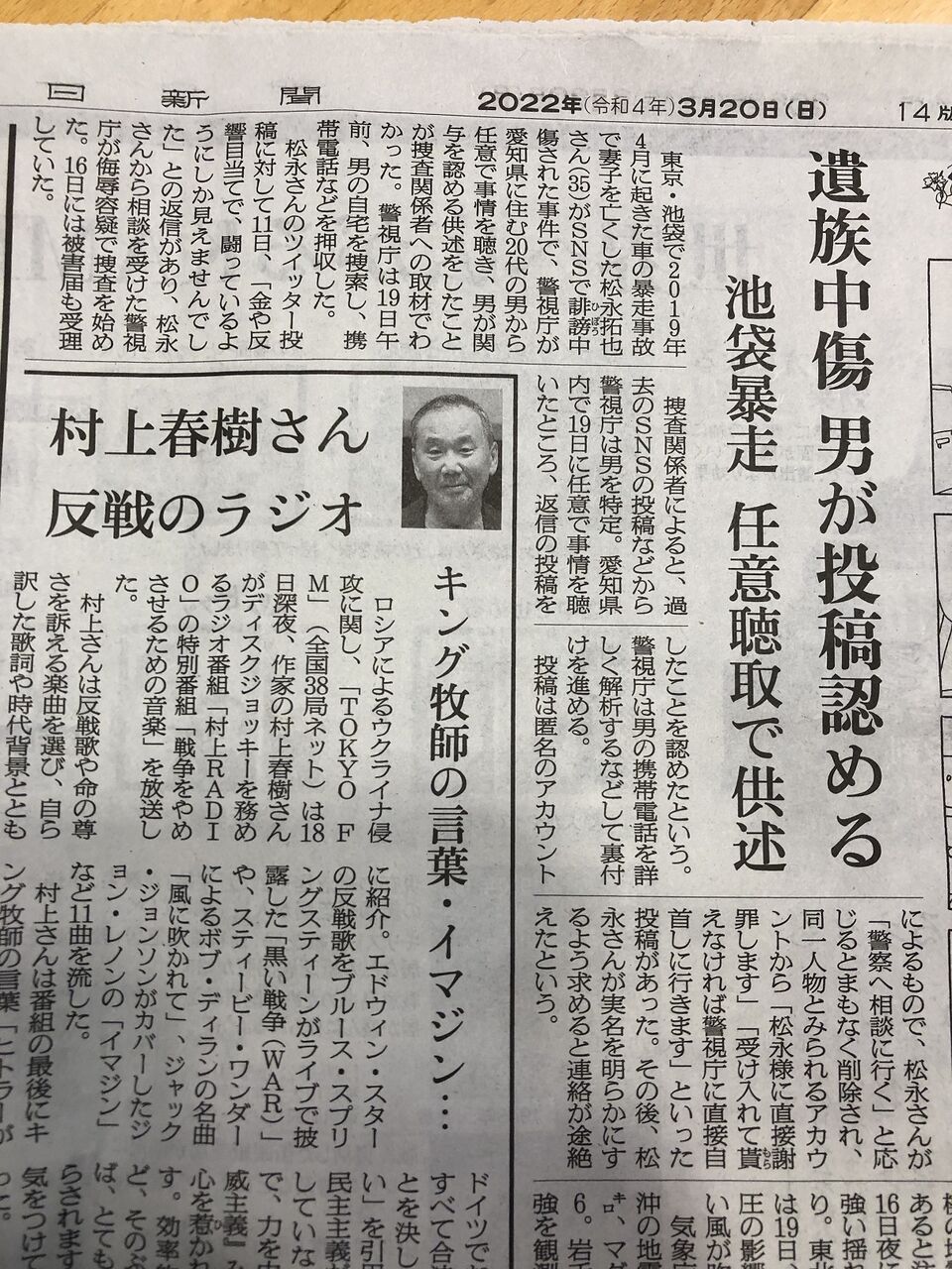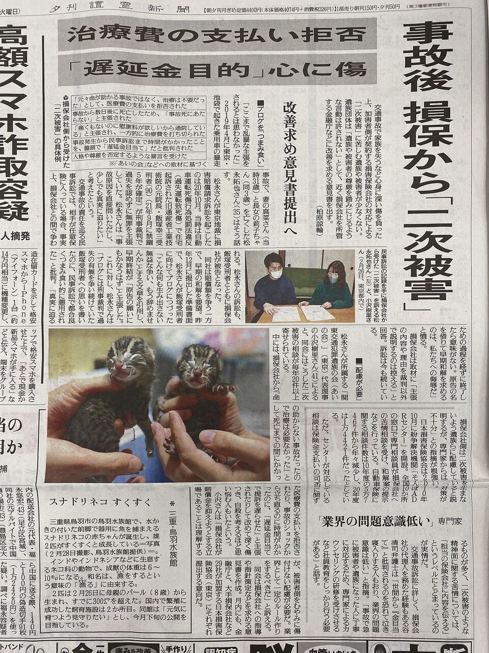 損保会社二次被害についての読売新聞記事(2022.3.15夕刊)