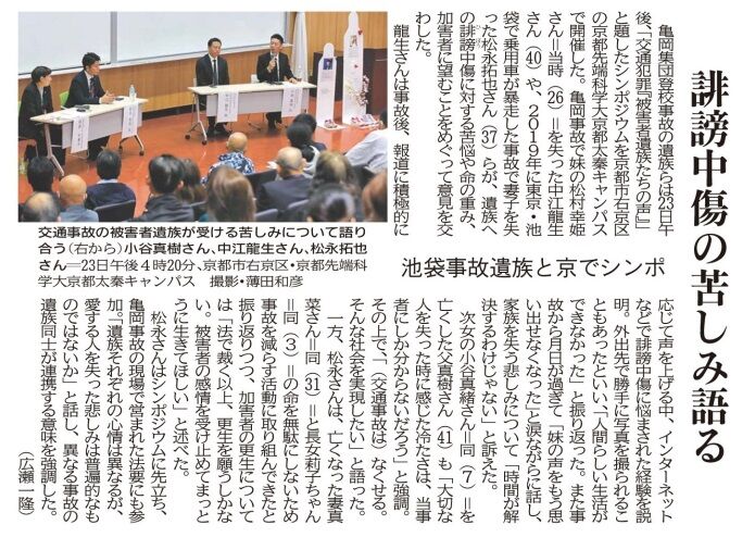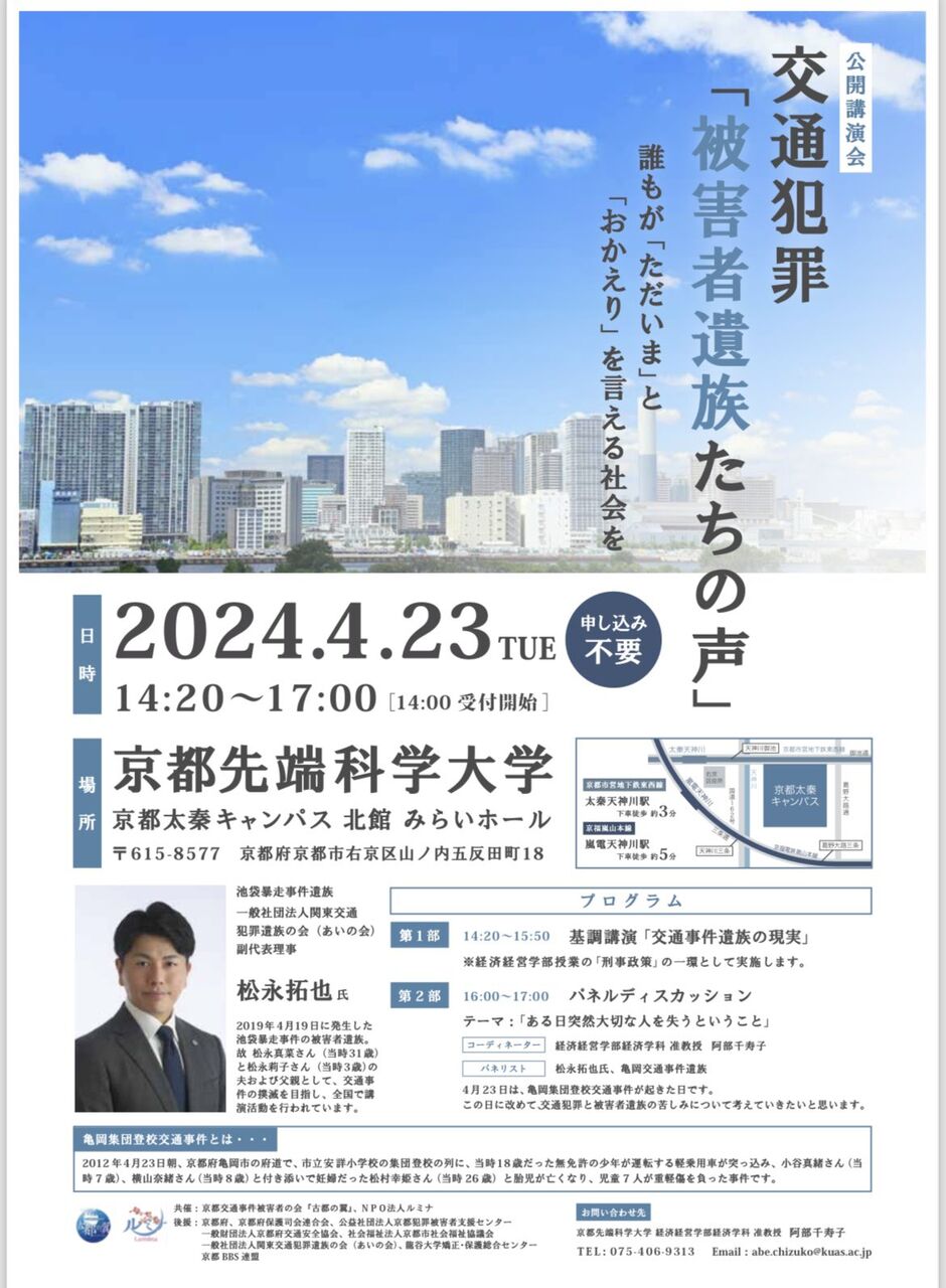 京都の公開講演会「交通犯罪「被害者遺族たちの声」参加報告(2024.4.23)
