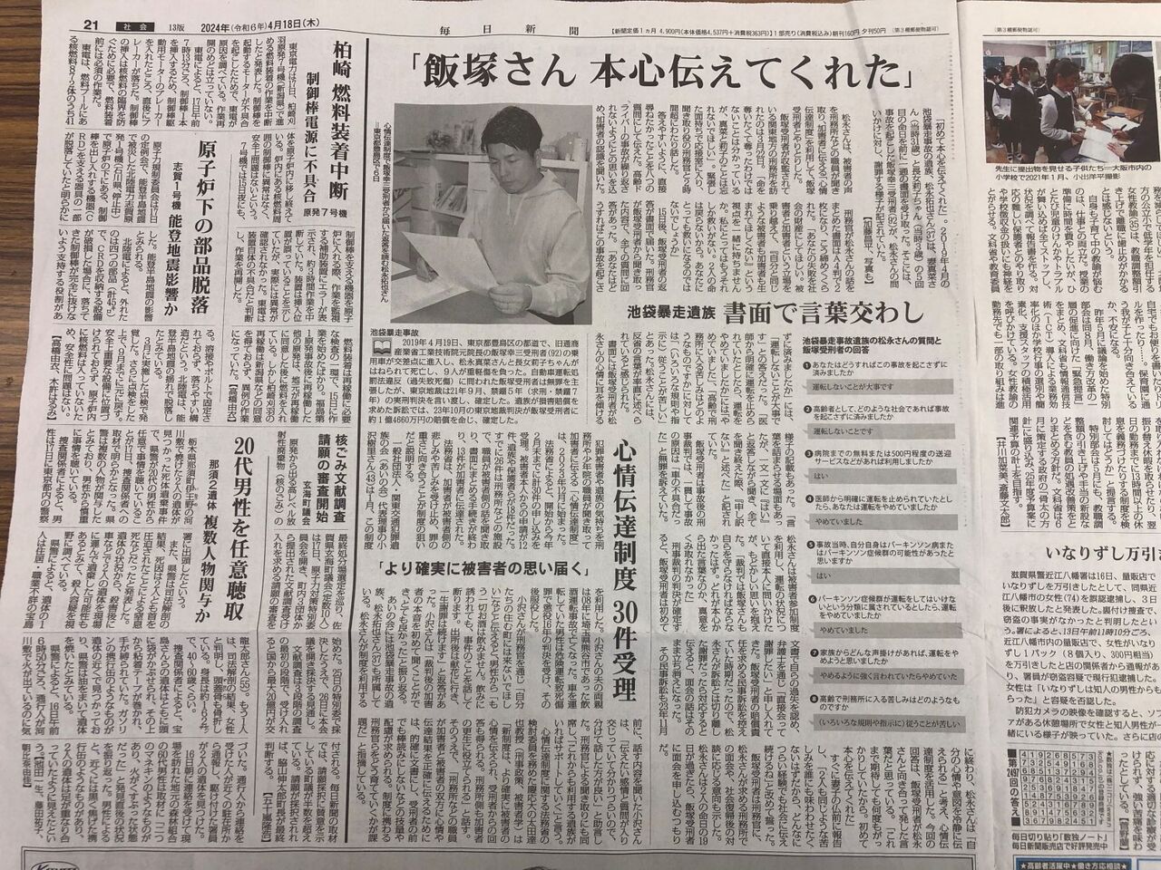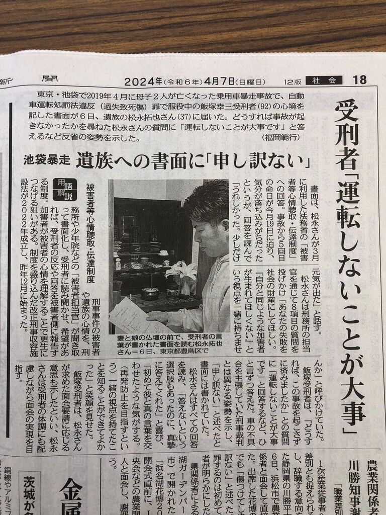 事件5年目を迎えての松永拓也の各紙記事紹介(2024.4.20)