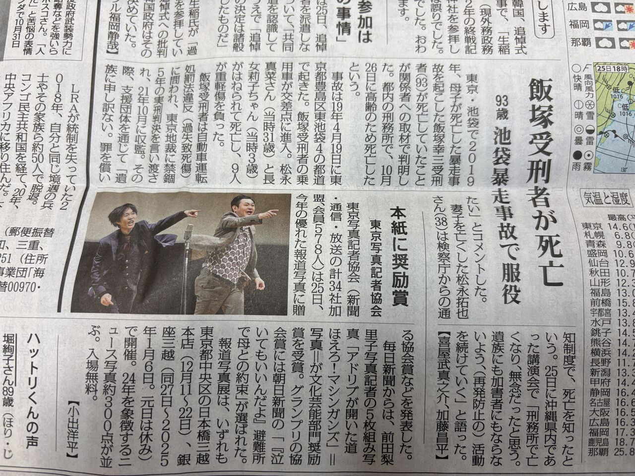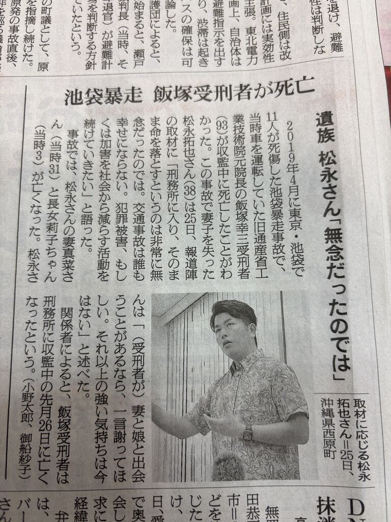 【各紙記事まとめ】飯塚幸三受刑者の死亡報道について