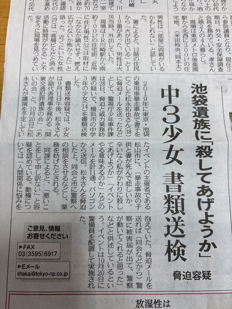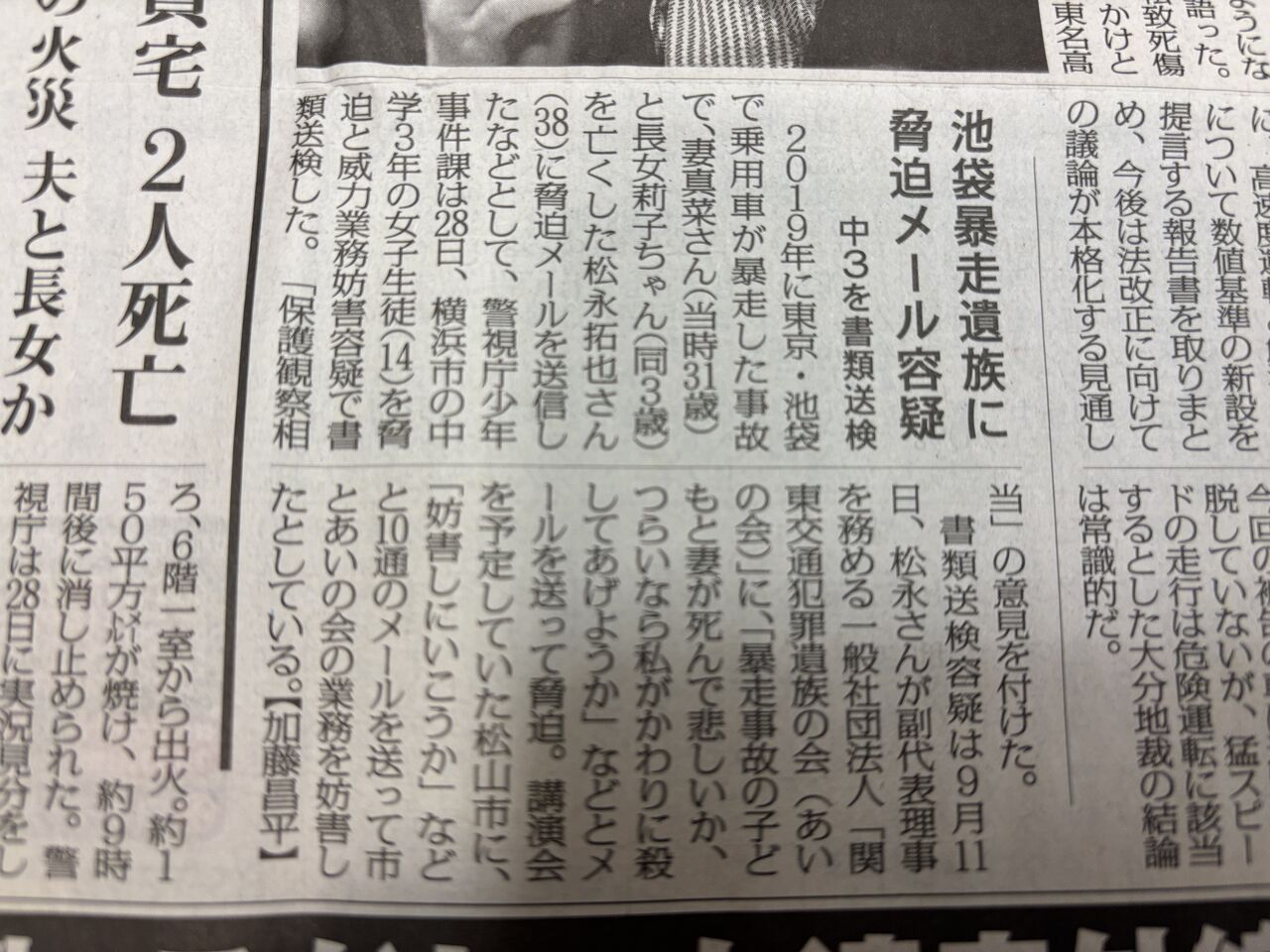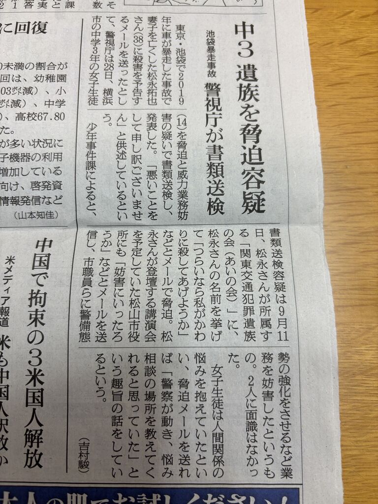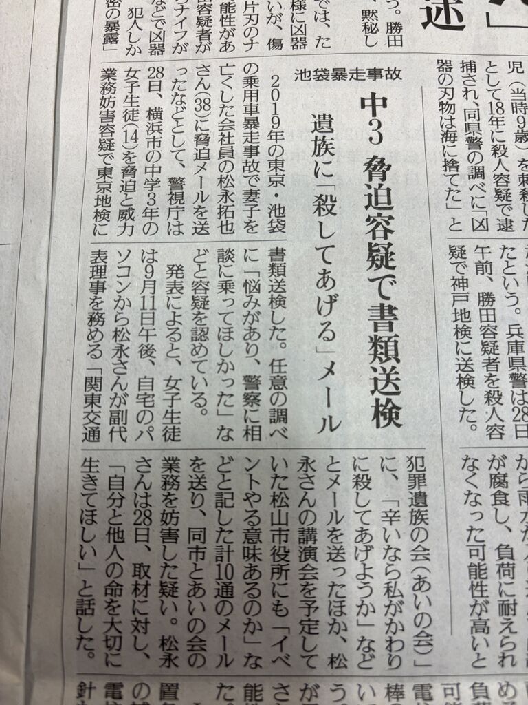 【各紙記事まとめ】松永拓也およびあいの会への威力業務妨害の未成年加害者の書類送検