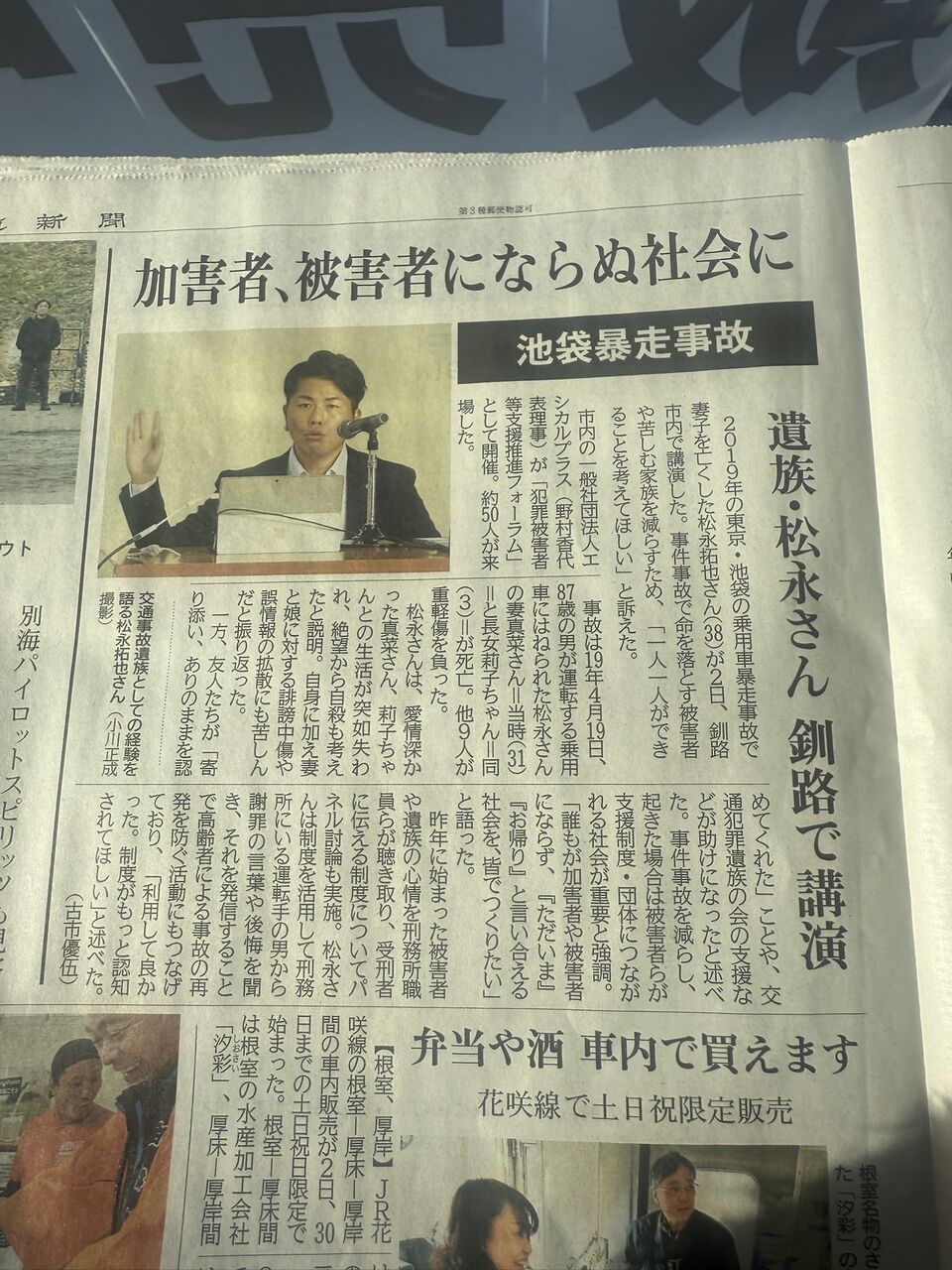 松永前日講演についての北海道新聞記事(2024.11.3)