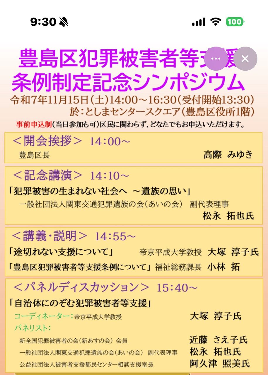 豊島区犯罪被害者支援条例シンポジウムに参加して(2025.11.15)