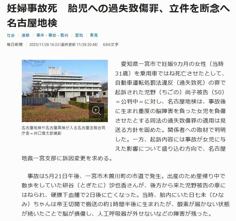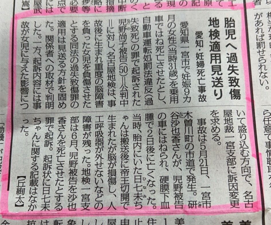 胎児の命は、被害として扱われないのか ―― 一宮市で起きた妊婦死亡事故を受けて