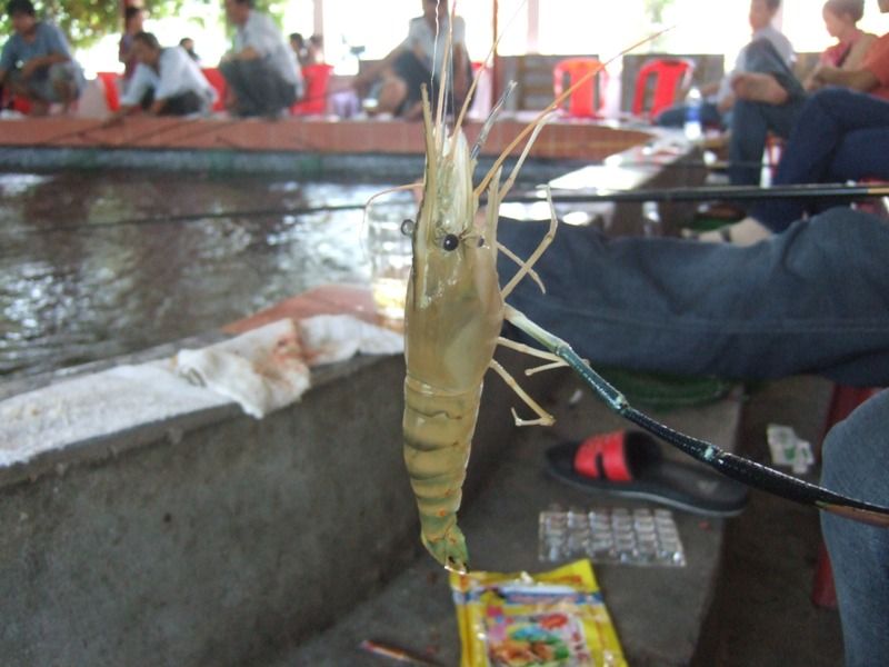 一定時間毎に、店の兄ちゃんが釣り堀の中に、エビをほりこんで