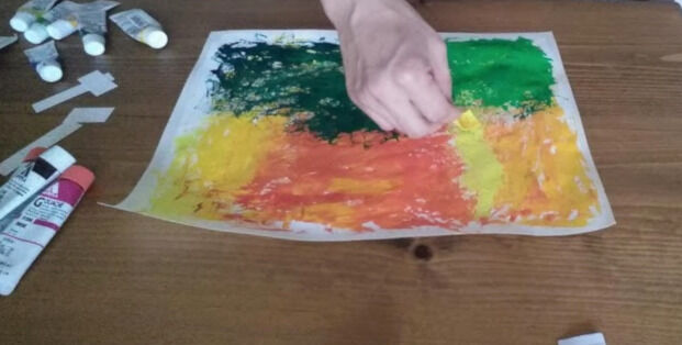 裏にハトロン紙を張ることで、布を