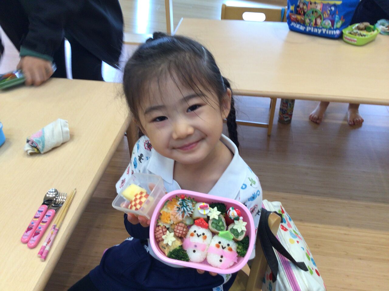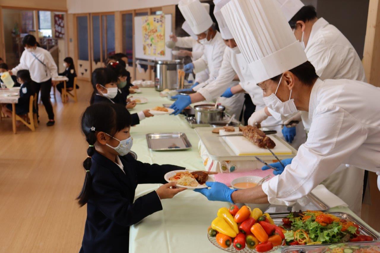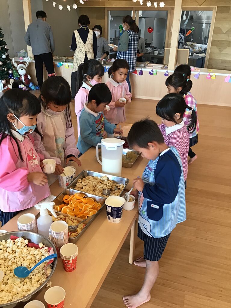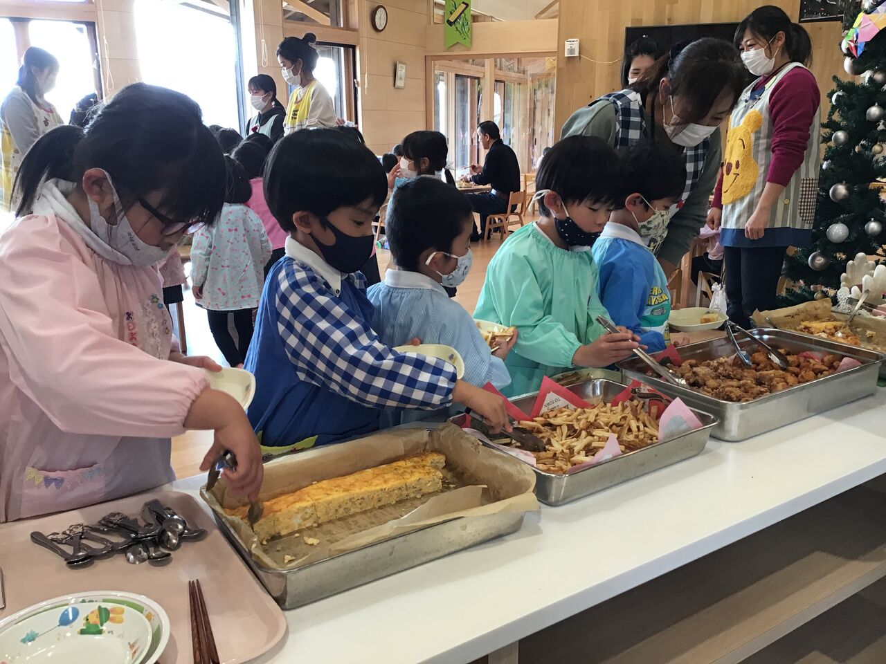 2021年12月17日 美味しかったよバイキング給食😲 今日の給食はバイキング子供たちの目がギラギラ 今年は、クリスマスコンサートが何と三回も行われ、渡辺ママの素晴らしい演奏が聴けました。 アンコールもみんな慣れた感じで声だしてました。 子供たちはクリスマス気分、最高潮