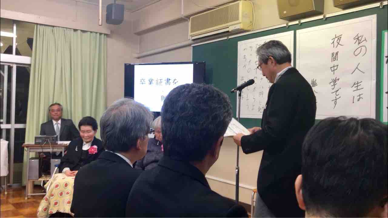 ■夜は、天理市立 北中学校 夜間学級(天理の夜間中学)の卒業式へ。